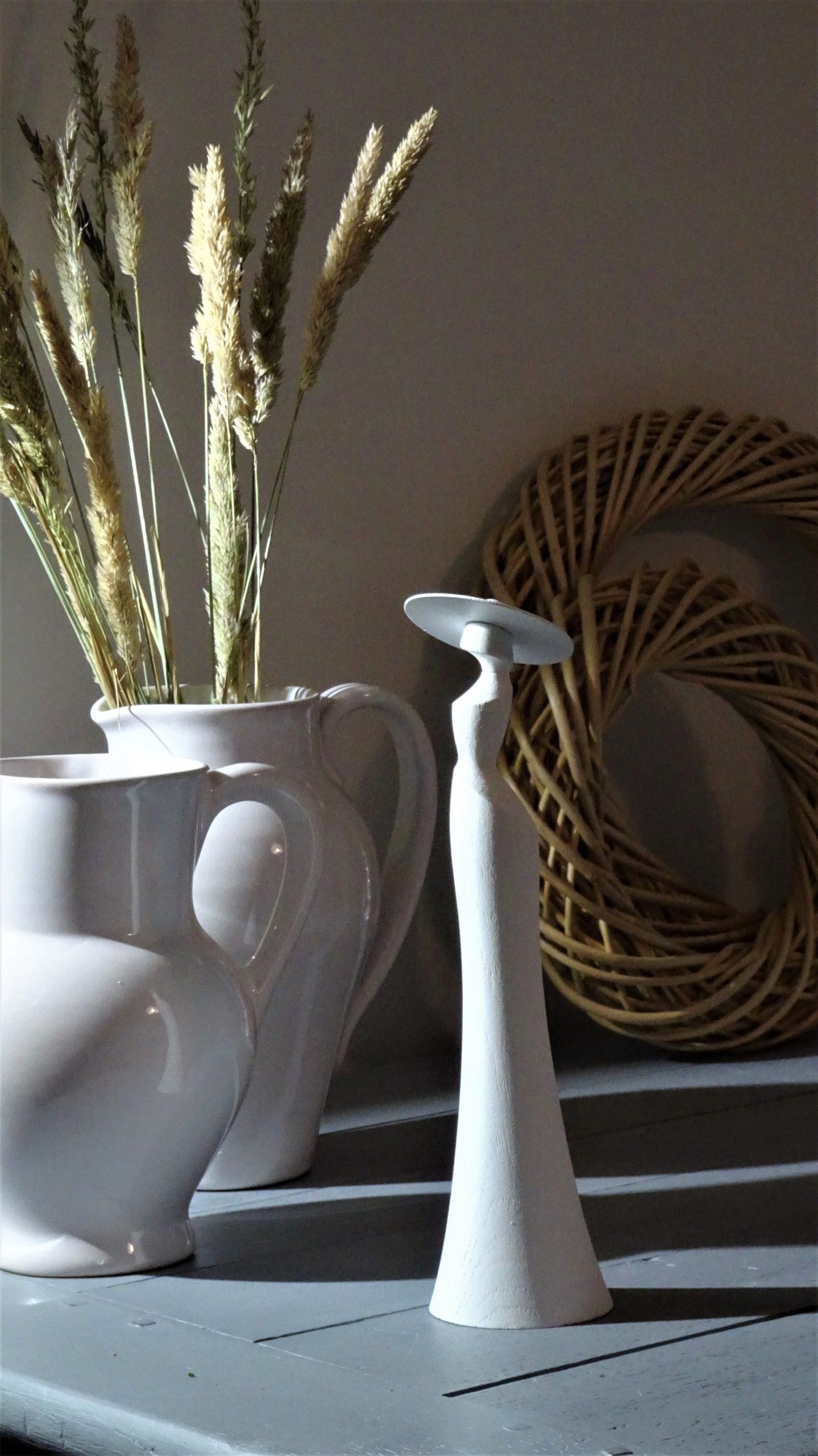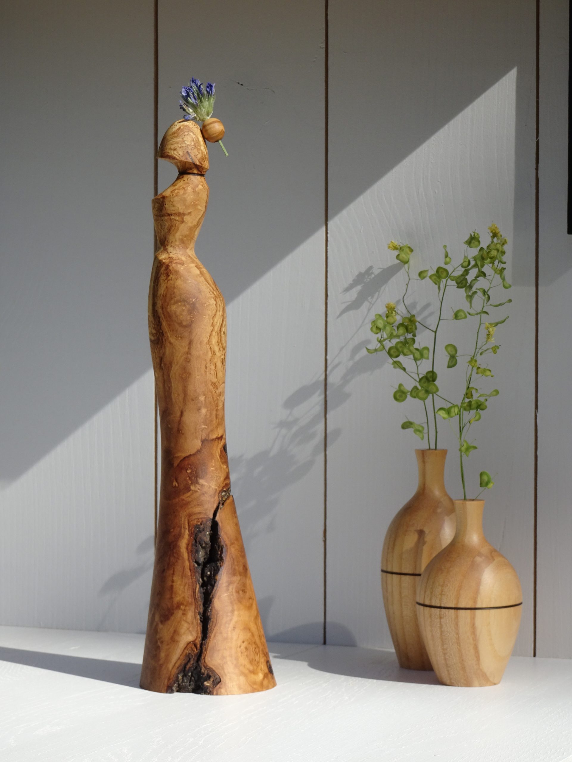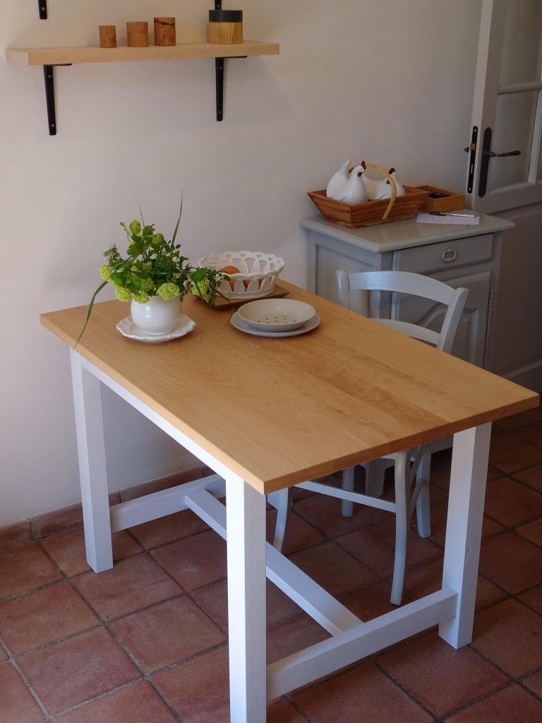 Piètement en bois de Châtaignier Drômois, finition patinée à base de Caséine.