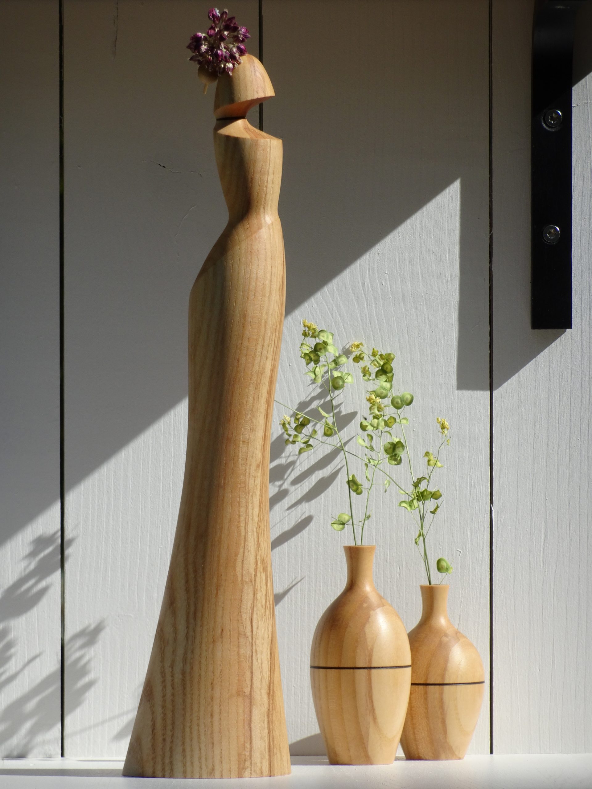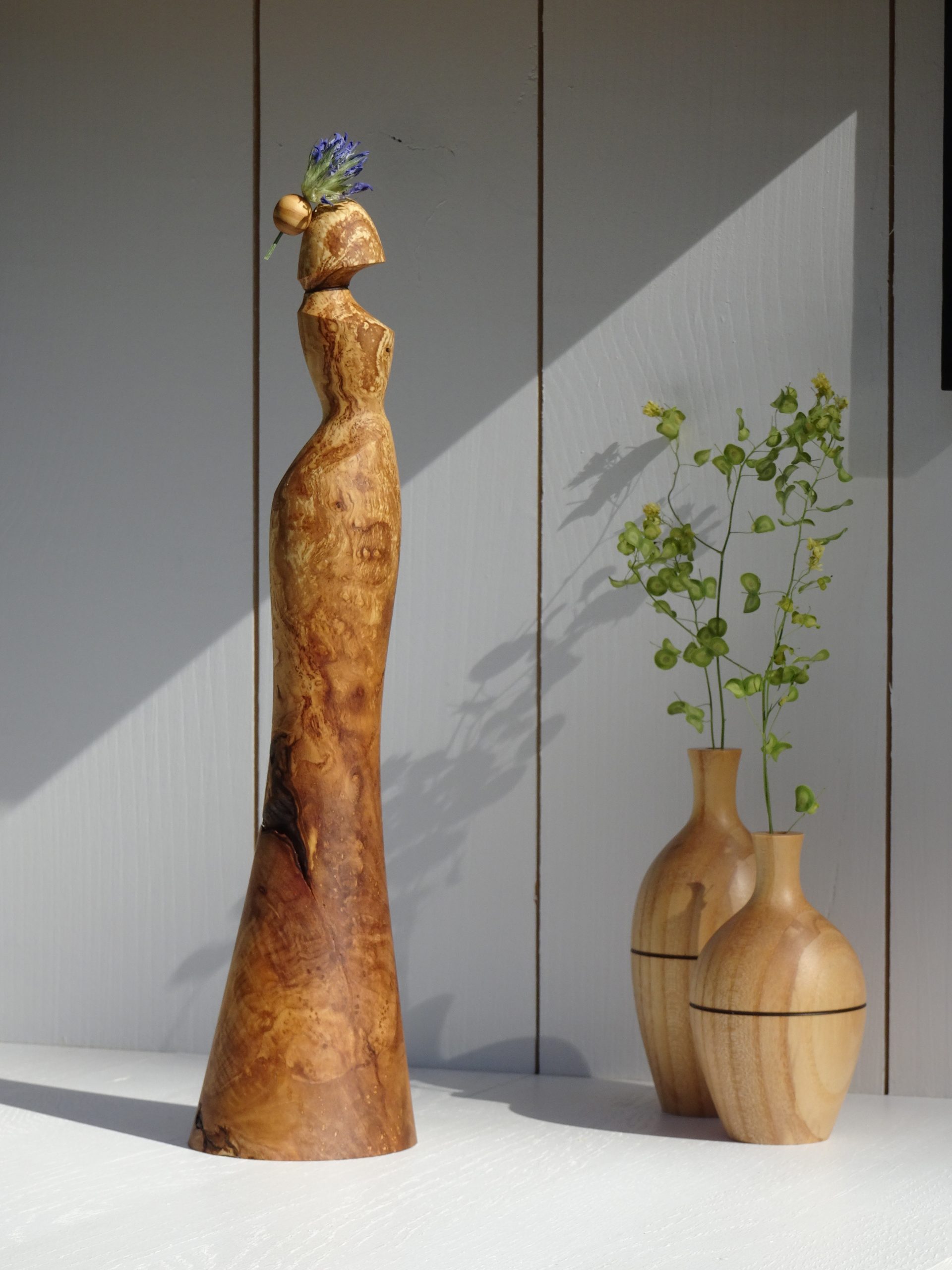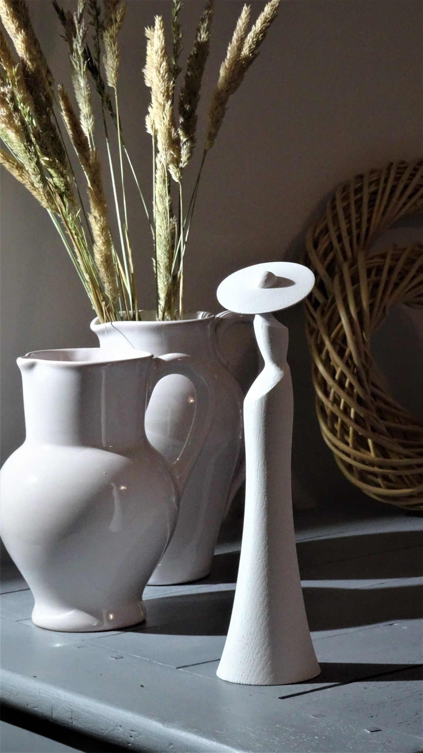 Piètement en bois de Châtaignier Drômois, finition patinée à base de Caséine.